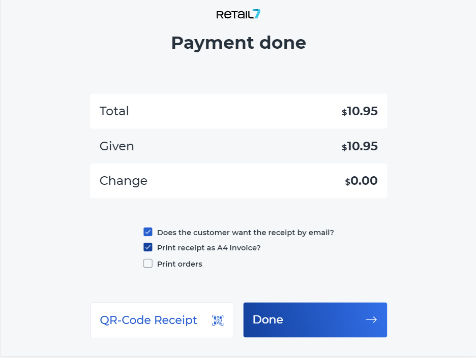 You can also add a customer to the transaction during item registration, or at checkout, at the "Payment done" screen.
