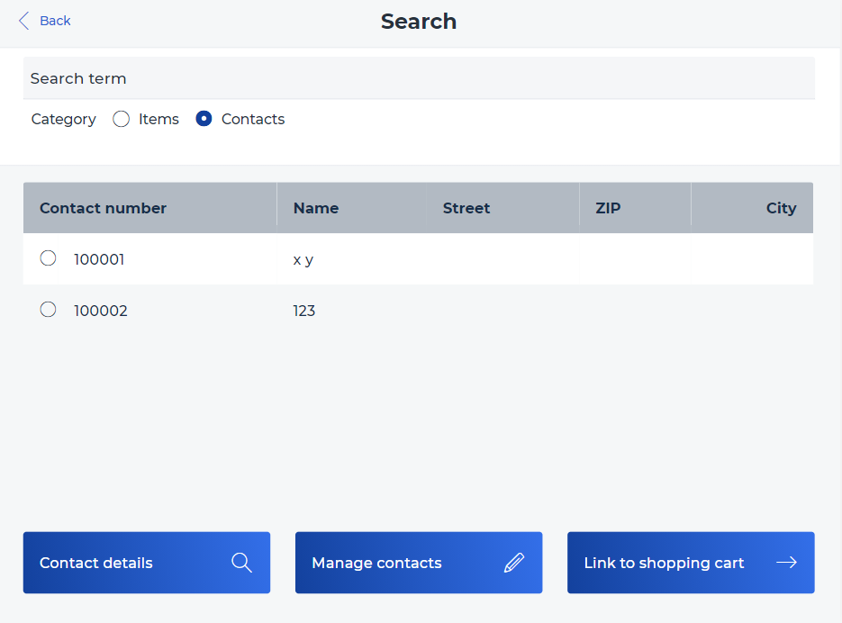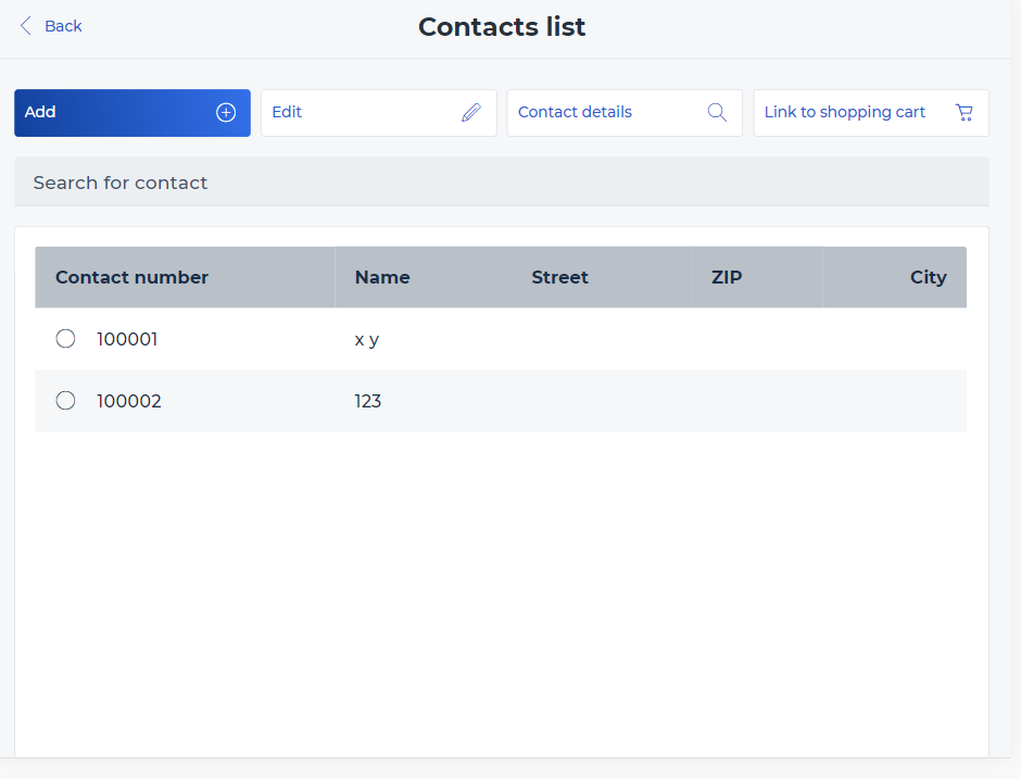 It´s also possible to add a new contact without transaction, via the magnifying glass on the left side, which has, besides the Item Search function, has another one: Search contacts.